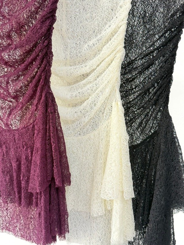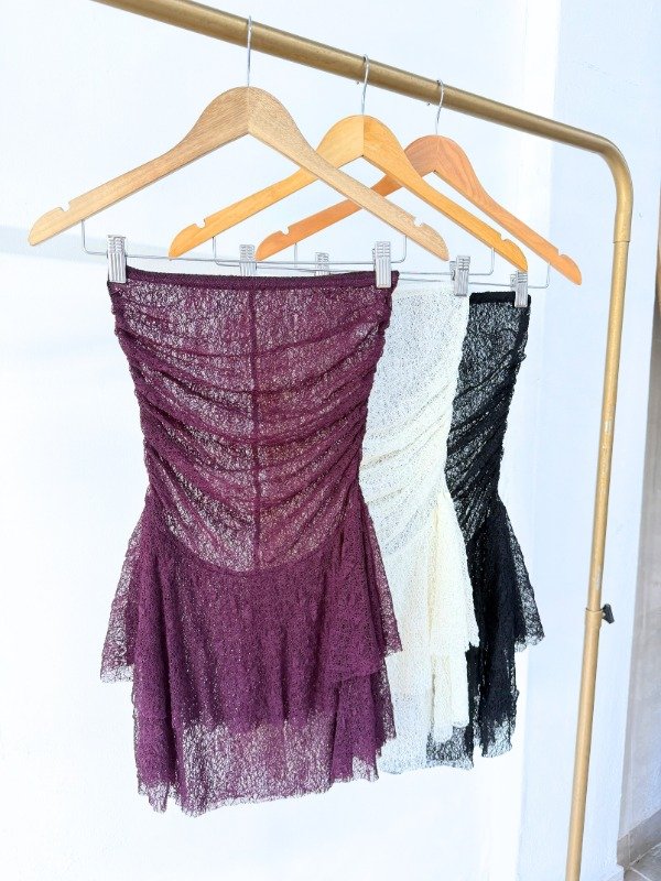 Vestido straples encaje volados