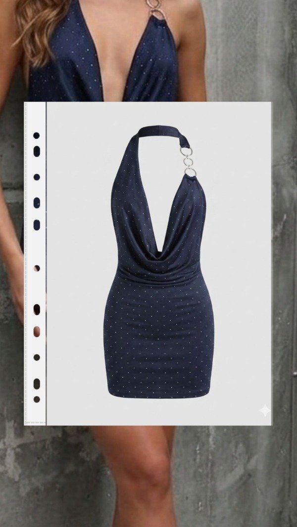 Vestido con buche caido y accesorio en strass